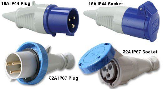 (Commando) plugs and sockets 110V,240V & 415V BS 60309 (formerly IEC 309) ,IP44 and IP67, 16A, 32A, 63A